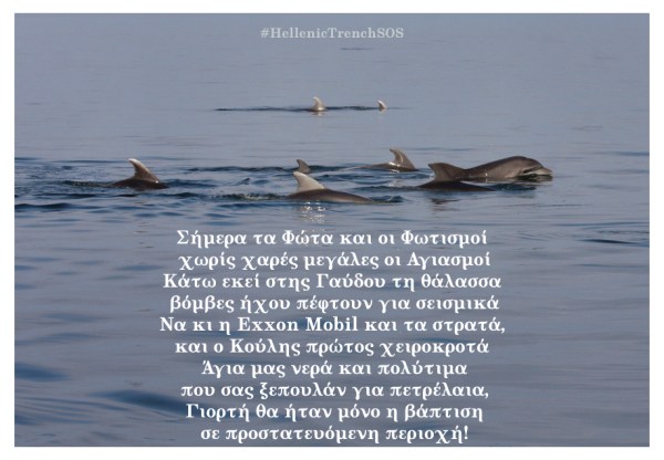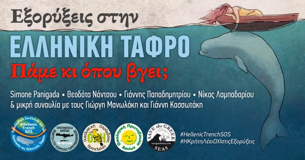Εκδήλωση στο πλαίσιο της καμπάνιας για την προστασία της Ελληνικής Τάφρου θα γίνει την Παρασκευή 7 Απριλίου και ώρα 19:00 στην αίθουσα του Δήμου Ηρακλείου «Μανώλης Καρέλης» στην οδό Ανδρόγεω. Για το ζήτημα των εξορύξεων υδρογονανθράκων και την σημασία της Ελληνικής Τάφρου θα μιλήσουν ο Πρόεδρος της Επιστημονικής Επιτροπής της ACCOBAMS Simone Panigada, η Επικεφαλής... Continue Reading →